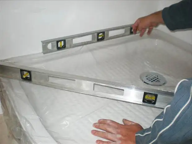 1. Поддон должен быть установлен по строгой горизонтали. Если этого не сделать, то в одном из углов постоянно будет застаиваться вода. Именно поэтому не игнорируйте строительный уровень. Установка поддона «на глаз» приведет к нежелательным последствиям.