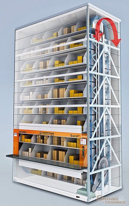 - Карусельные системы представляют собой вращающиеся устройства, которые доставляют нужные позиции к оператору или в зону упаковки. Они удобны для хранения небольших комплектующих и обеспечивают быстрый доступ к часто востребованным изделиям.