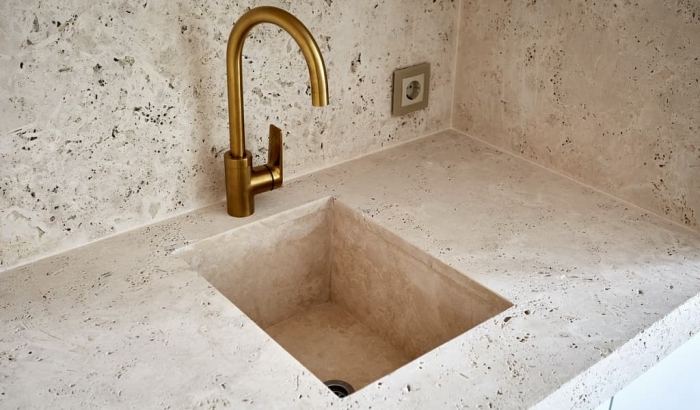 - Укладка плит травертина обеспечивает долговечность и эстетическое качество облицовки при минимальном уходе.