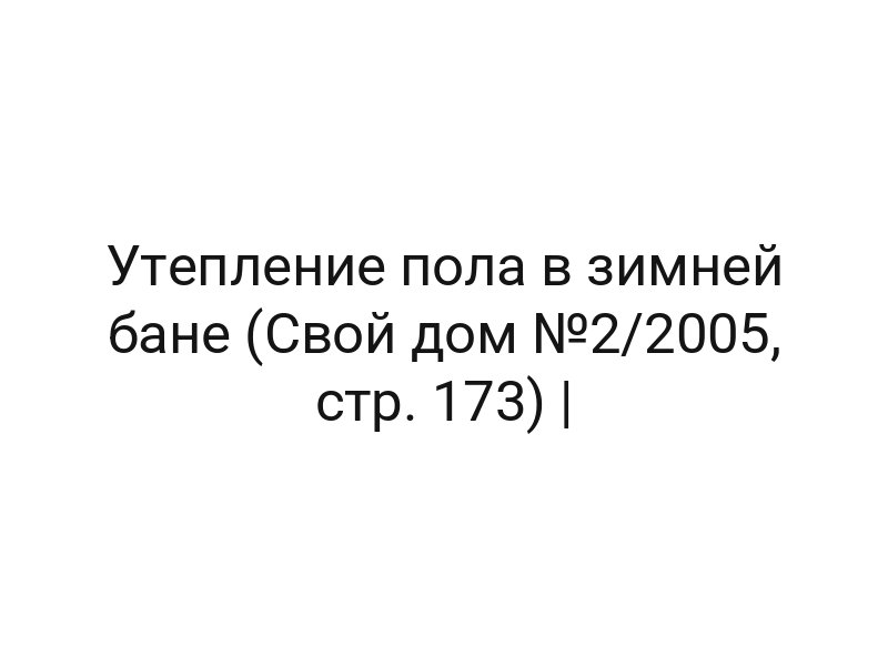 Утепление пола в зимней бане (Свой дом №2/2005, стр. 173)